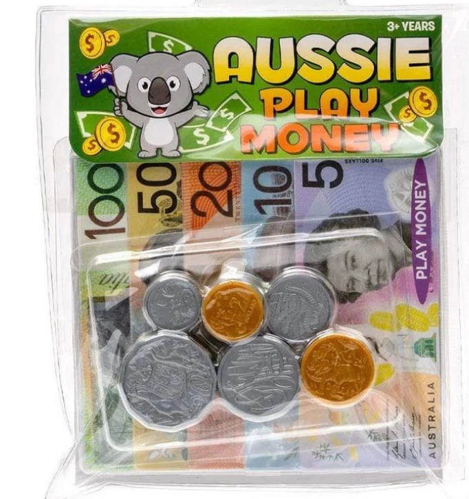 •   Adding the Aussie Play Money to your child’s playtime will help them learn how to sell or shop using the concept of money.