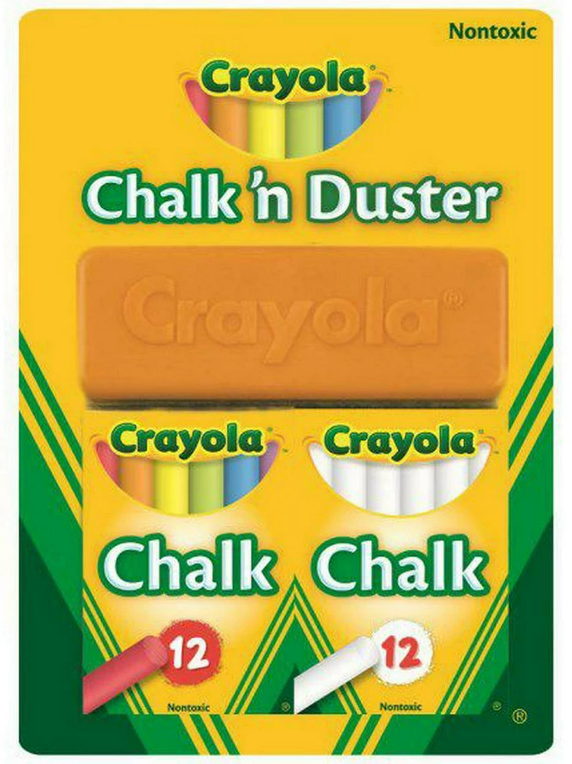 It features 12 plain white chalks and 12 multicoloured chalks which your
