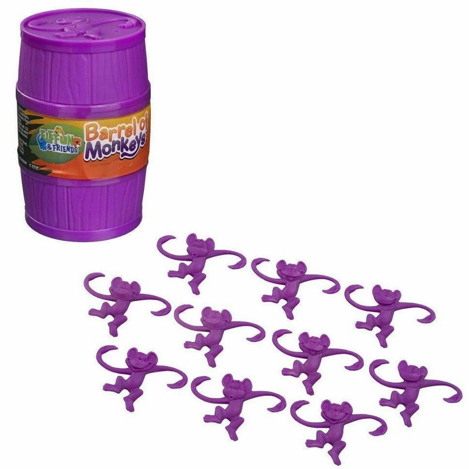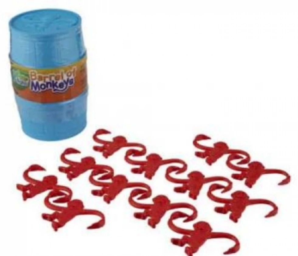 Star in your own wild monkey parade with the Barrel of Monkeys game! These little monkeys have gone wild, and when you throw them all in a big pile, they’re all tangled up with arms and tails. Can you pick up one monkey and then pick up another with the first monkey’s arm? Don’t drop your monkeys as you build your parade, or you’ll lose your turn! Build the longest monkey parade to win! Includes 10 monkeys and instructions.