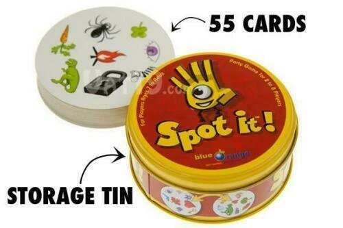 Spot it! is played with 55 circular cards, each decorated with eight
