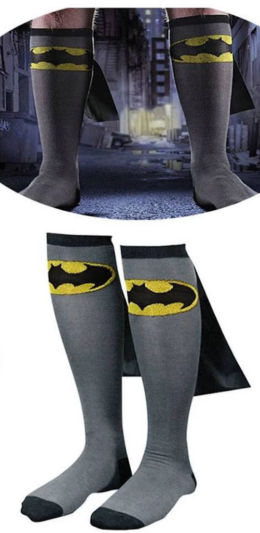 Get ready to save Gotham City from notorious villains, and evil with these Superhero Socks with Cape.