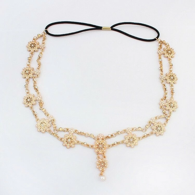 gold delicate flower pearl and rhinestone head crown. Perfect your bridal look