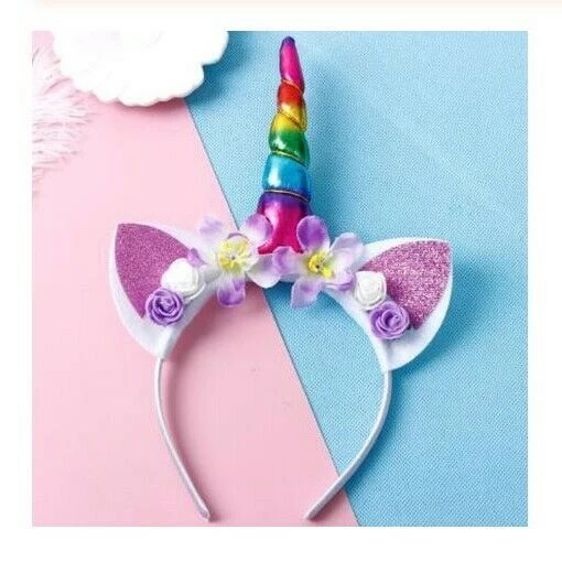 Vibrant hues and playful unicorn detailing adds a whimsical touch to your little one’s ensembles. Unicorn horn with felt rainbow flowers and ears.