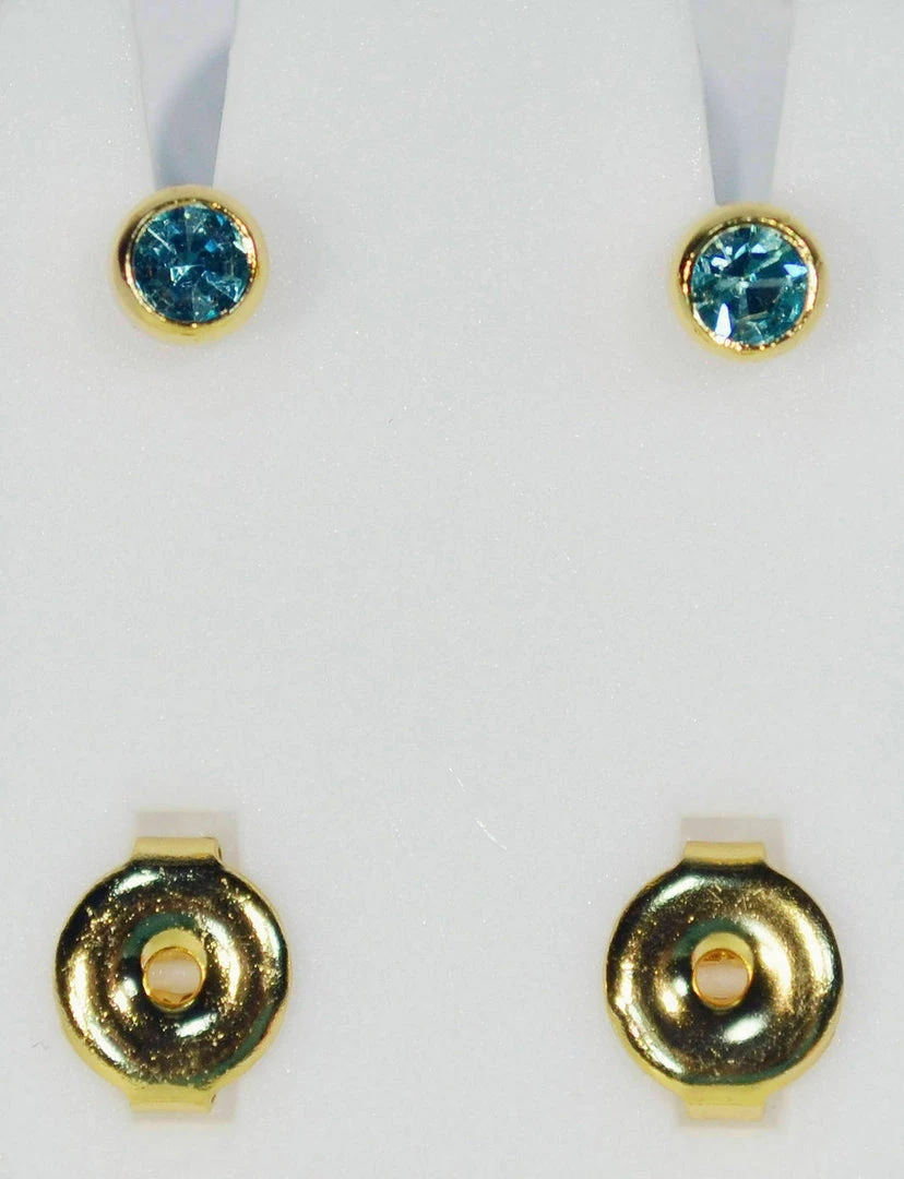 Your choice of gold plated stainless steel birthstone stud earrings. Please note the earrings in the picture are magnified to show colours. The setting measures 4mm.
