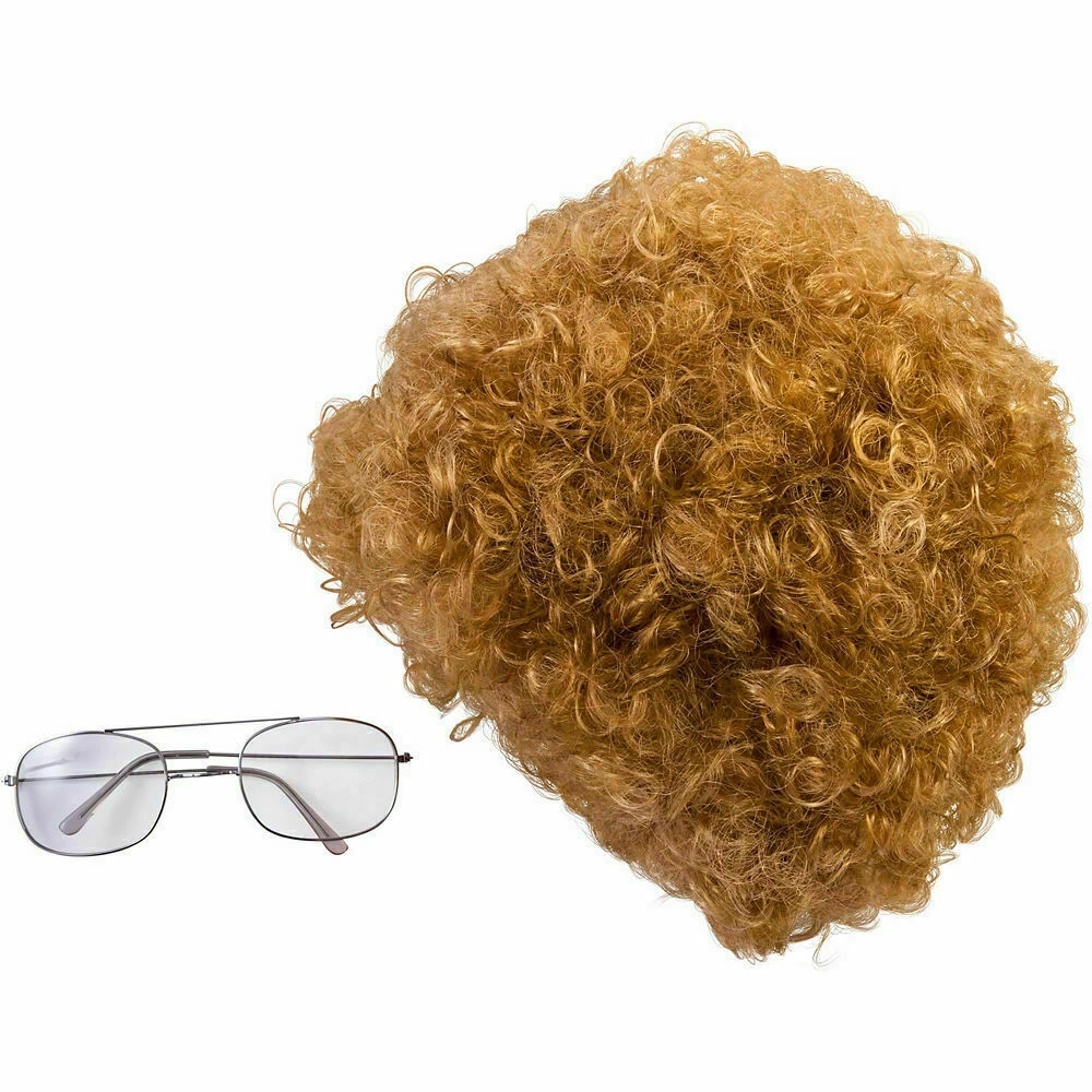 Our 70s Nerd Accessory Kit features a copper-red wig, made of synthetic fiber, full of tightly coiled curls that look like a perm gone wrong. 70s style glasses with large silver metal frames and a double-bridge that sits on the nose are also included. Wig cap recommended (sold separately). 70s Nerd Accessory Kit is recommended for ages 14 and up.Â