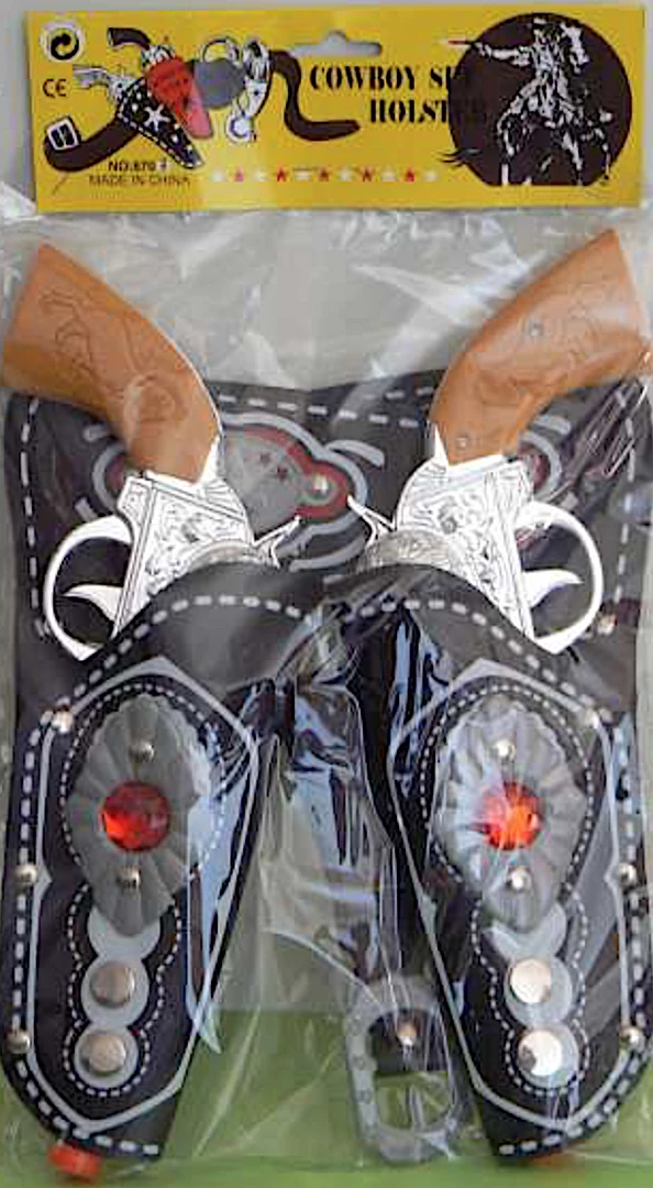 These cowboy guns and holsters are the perfect costume accessory for a costume party! Â With 2 guns and 2 holsters in a pack (each gun in a holster measures approx. 12cm x 29cm), they’re easily coordinated with the rest of our costumes and costume accessories and are sure to be a big hit!