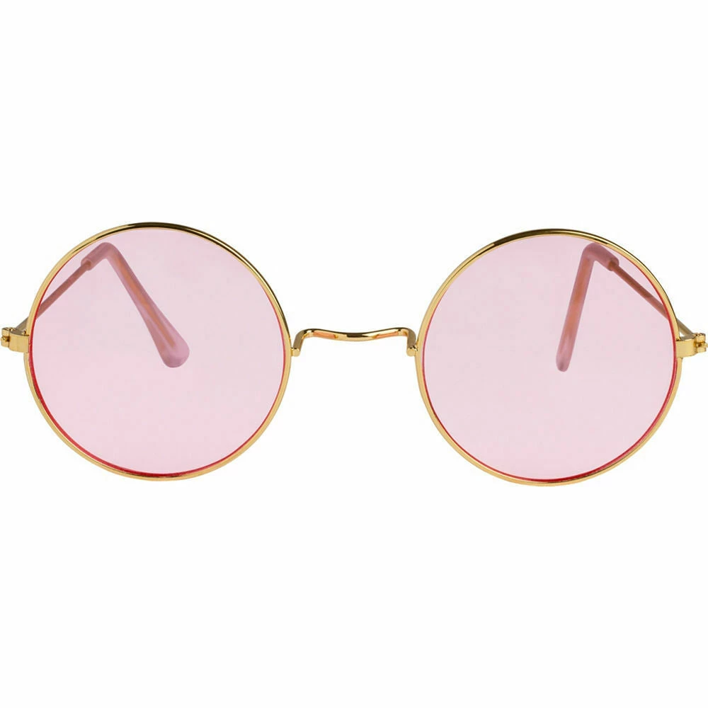 See the world through rose colored Hippie Glasses! These groovy Hippie Glasses bring back the summer of love. Hippie Glasses feature round, gold wire frames with slightly tinted lenses. One size fits most adults.