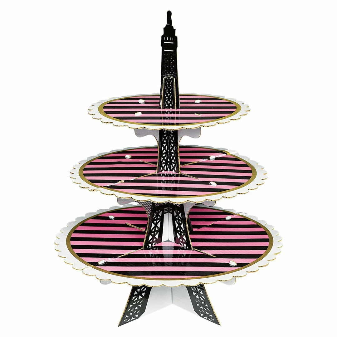 Display the delectable treats at your French-themed party in a fashionable way with a fabulous A Day in Paris Cupcake Stand! This cardstock stand features an Eiffel Tower cutout with three pink and black striped tiers to place cupcakes, cookies, and other desserts on. Your guests won’t be able to resist grabbing a few sweets after passing by this fascinating France-inspired party decoration.