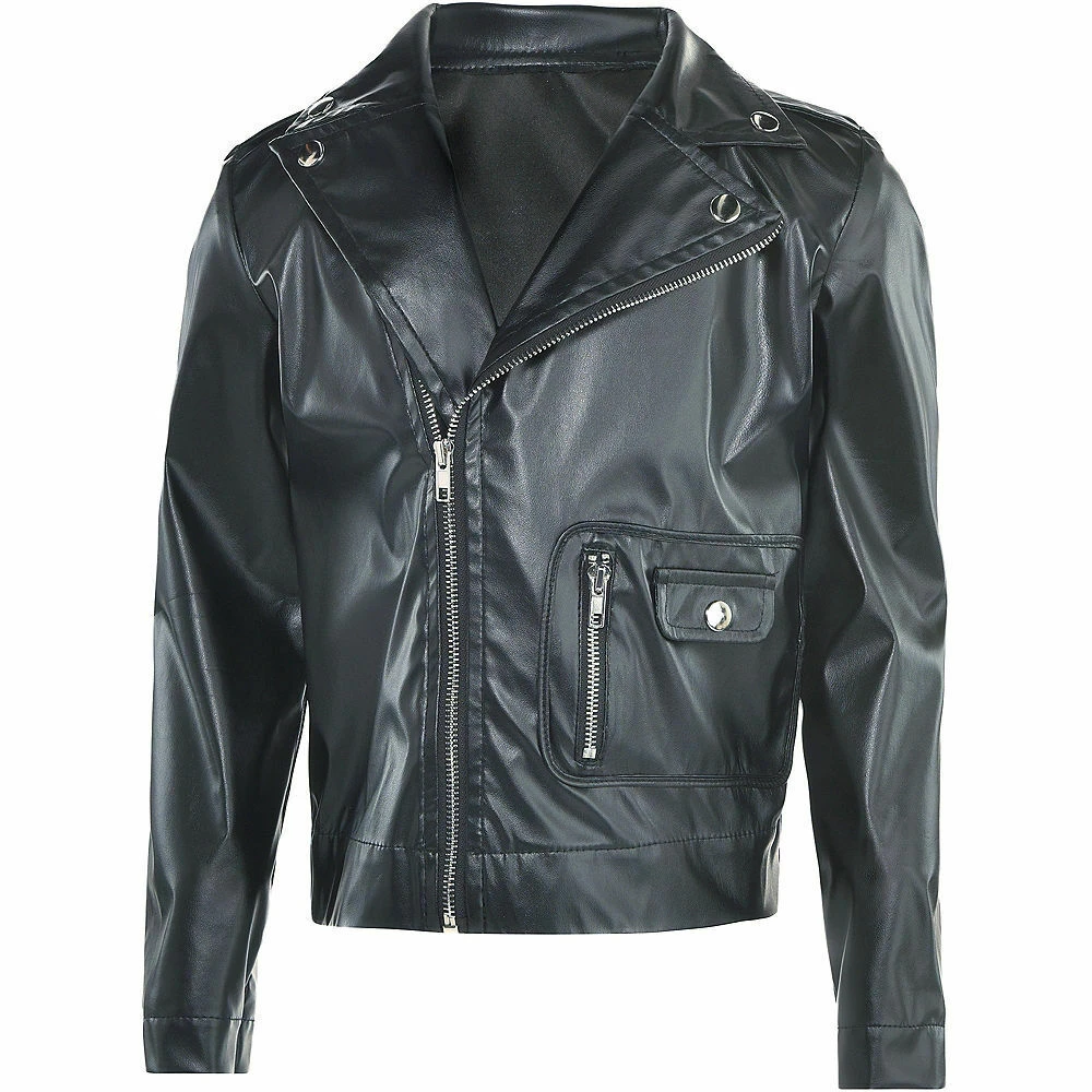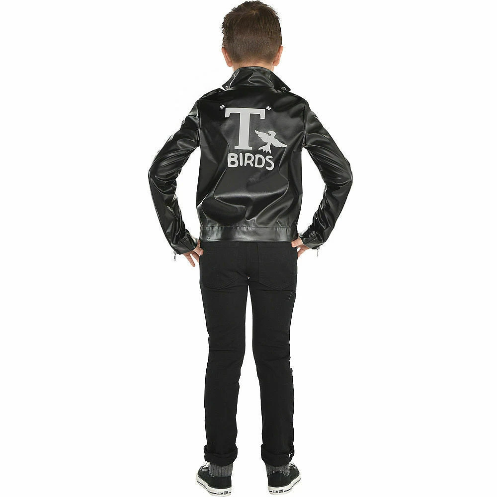 Your little one is ready to hang out with the rest of the greaser gang at Rydell High in a Grease T-Birds Leather Jacket for kids! The black leather jacket features a white “T-Birds” logo on the back. Pair this jacket with jeans, a T-shirt, and boots (sold separately) to create a greaser costume for your child. Dress up your little one in this T-Birds Leather Jacket to meet the rest of the T-Birds at the Frosty Palace! Shoes, shirt, and pants not included.