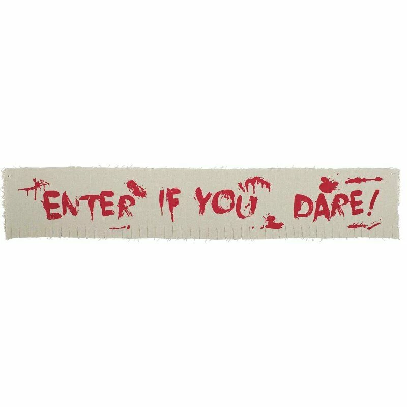 Suspend this 1.8m tattered cloth banner this Halloween for a really Creepy Carnival look. This banner has ‘Enter if you dare’ written in red to resemble blood! Nice!