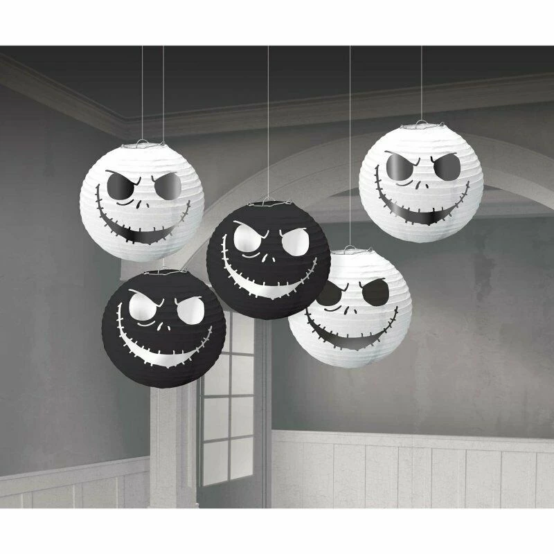 Celebrate Halloween or your birthday party with Jack Skellington with these fun Disney Nightmare Before Christmas Mini Lanterns. Perfect for anyone who’s fan of the Tim Burton film. These lanterns come in a pack of 5; 2 black and 3 white and each feature Jack Skellingtons grin and frowning eyes cut out. Hang outside or on the ceiling and have Jack smiling down at you while you celebrate. Check out the rest of our Nightmare Before Christmas party supplies and create a fun coordinated look.