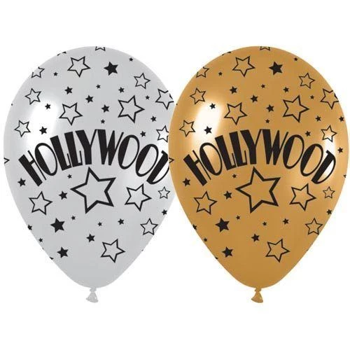 Add more glamour to your party with these Hollywood Gold & Silver Latex Balloon! Gold and silver balloons feature a “HOLLYWOOD” headline with stars. Measures 30cm and comes in a pack of 50