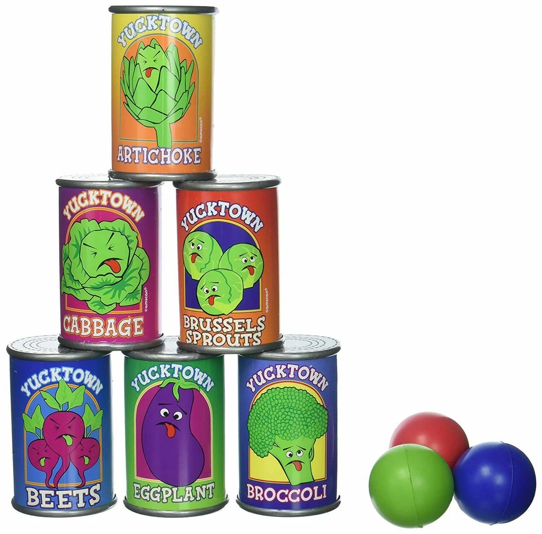 Set ’em up and knock ’em down! With plastic cans and rubber balls, our Can Toss Game is a safer version of the popular carnival game. The cans come with colorful vegetable labels and are designed to stack easily, making the Can Toss Game a great backyard activity for kids of all ages.