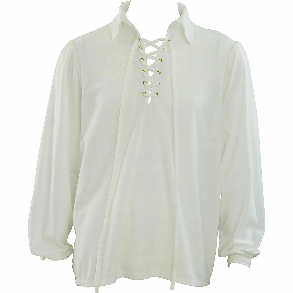 Become a gentleman scallywag in our retro Pirate Shirt. Built on high seas adventure, this polyester Pirate Shirt features colonial detail and lace up collar. One size Pirate Shirt fits men’s Standard (through Chest size 42).