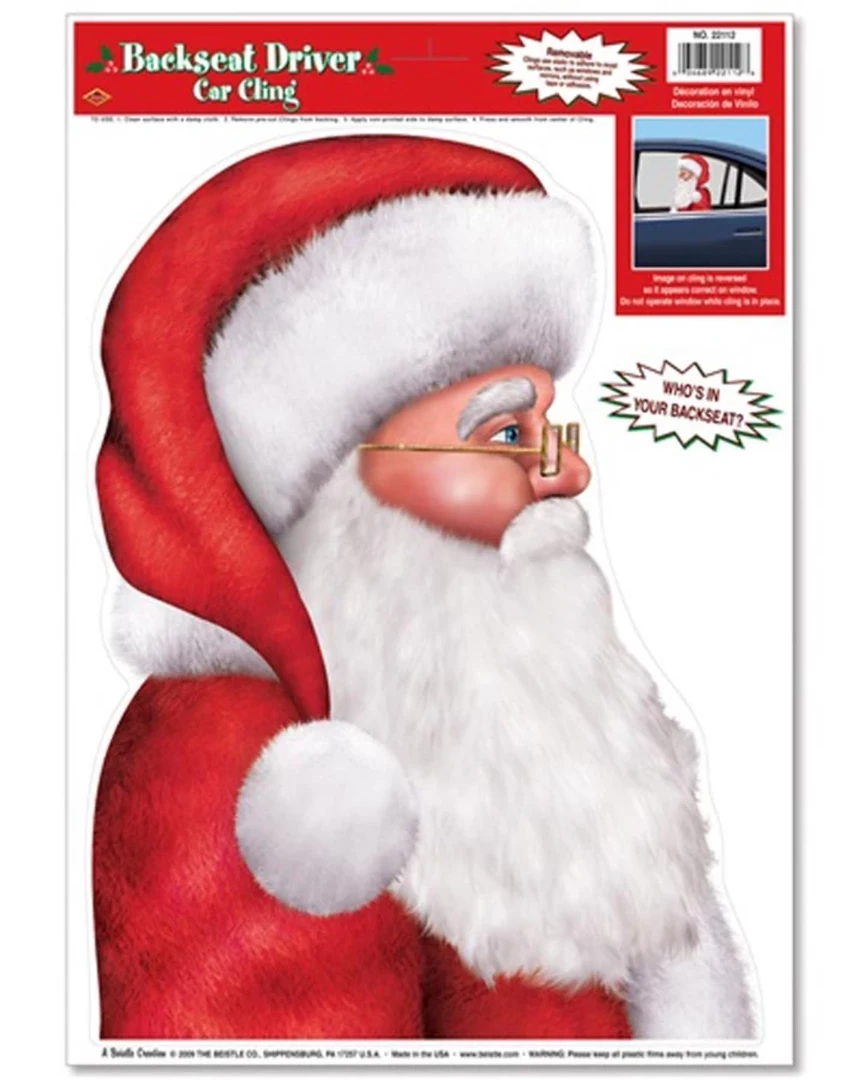Stick this Santa Window Cling to your car window and make passers by look twice! The image is reversed on the cling so it will appear the correct way on your back window. A very special passenger indeed!