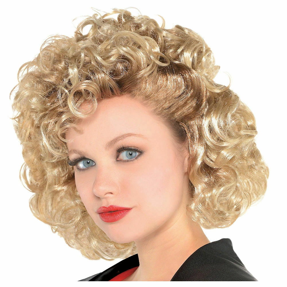 Complete your look as the sweetheart of Rydell High by accessorizing with a Sandy Olsson Greaser Wig! A wig featuring blonde synthetic fiber hairs styled into curls will be a great addition to your Sandy Olsson costume. Pair this wig with a black jacket, a black shirt, and black pants (sold separately) to complete the look. Get ready to bust out some rockin’ dance moves at the costume party while wearing this Sandy Olsson wig! Jacket and shirt not included.