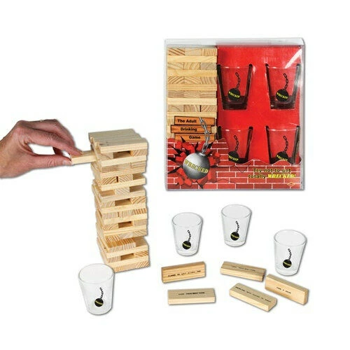 Wrecked Drinking Game is a great way to bring together two loves: Drinking and good times with friends. Wrecked Drinking Game consist of 60 blocks each with written instructions on them such as “Drink two with player to left” and “Make a rule.” As you pull the blocks out you need to follow the directions before you attempt to stack it back on top of the pile without wrecking it.