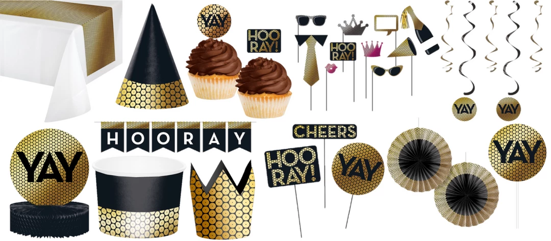 Select Gold Party Supplies to complement your YAY and HOORAYÂ themed celebration. Perfect for 1920s, Roaring 20s, Greatgatsby theme party as well!