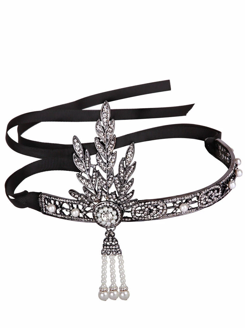 - Headband is made of satiny ribbon material with an ornate rhinestone appliqués and pearls on the front, this elegant headband adds a luxurious touch to any outfit.