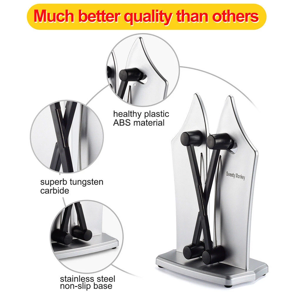 Features two independent spring-action arms made of tungsten carbide that contour to your knife’s edge better than a knife sharpening stone