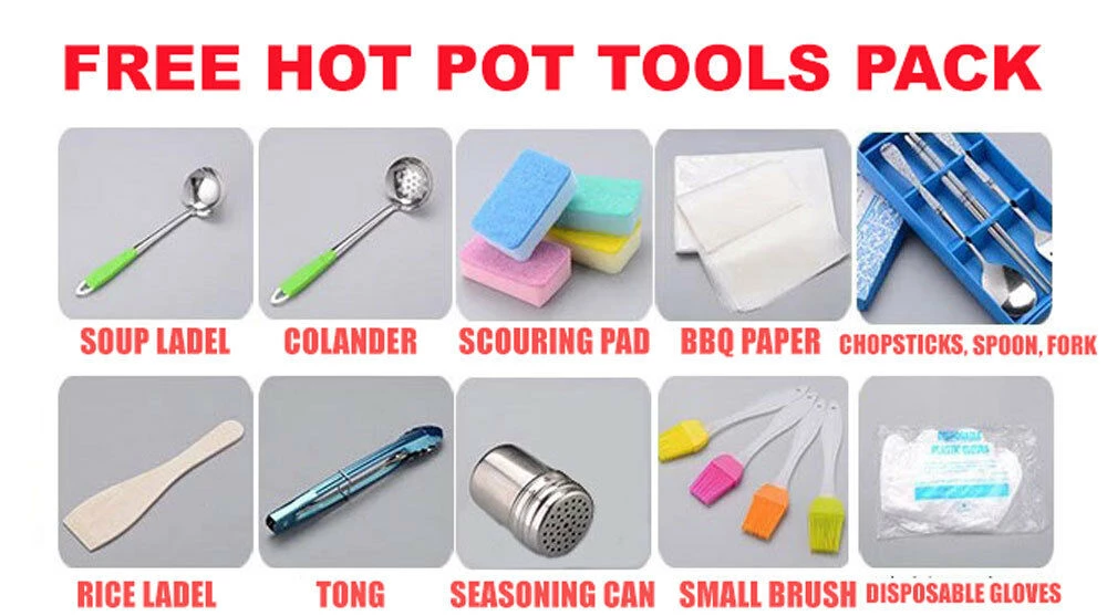 - FREE all in 1 BBQ/hotpot tool pack – as in the main product picture.