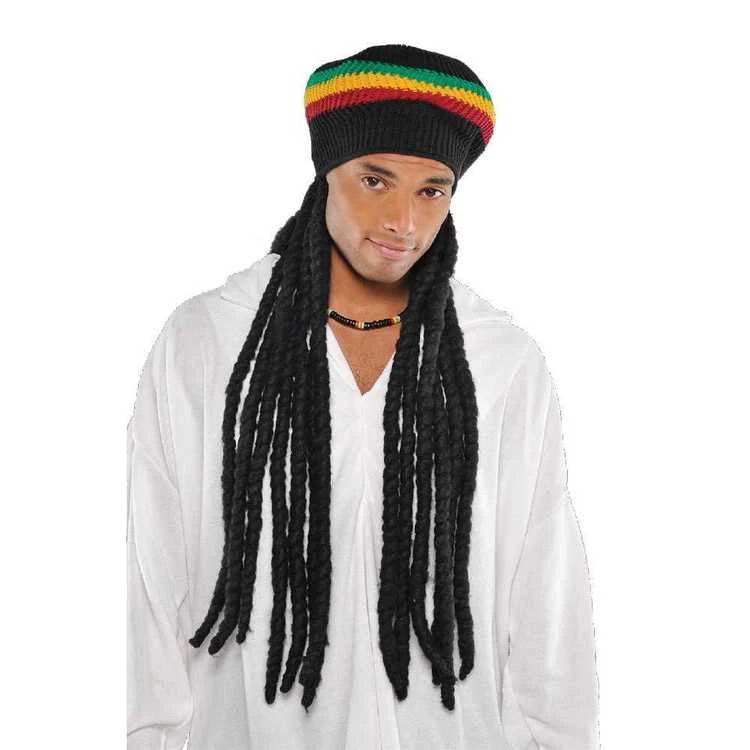 This Buffalo Soldier Wig features an oversize Tam cap with attached long black dreadlocks.