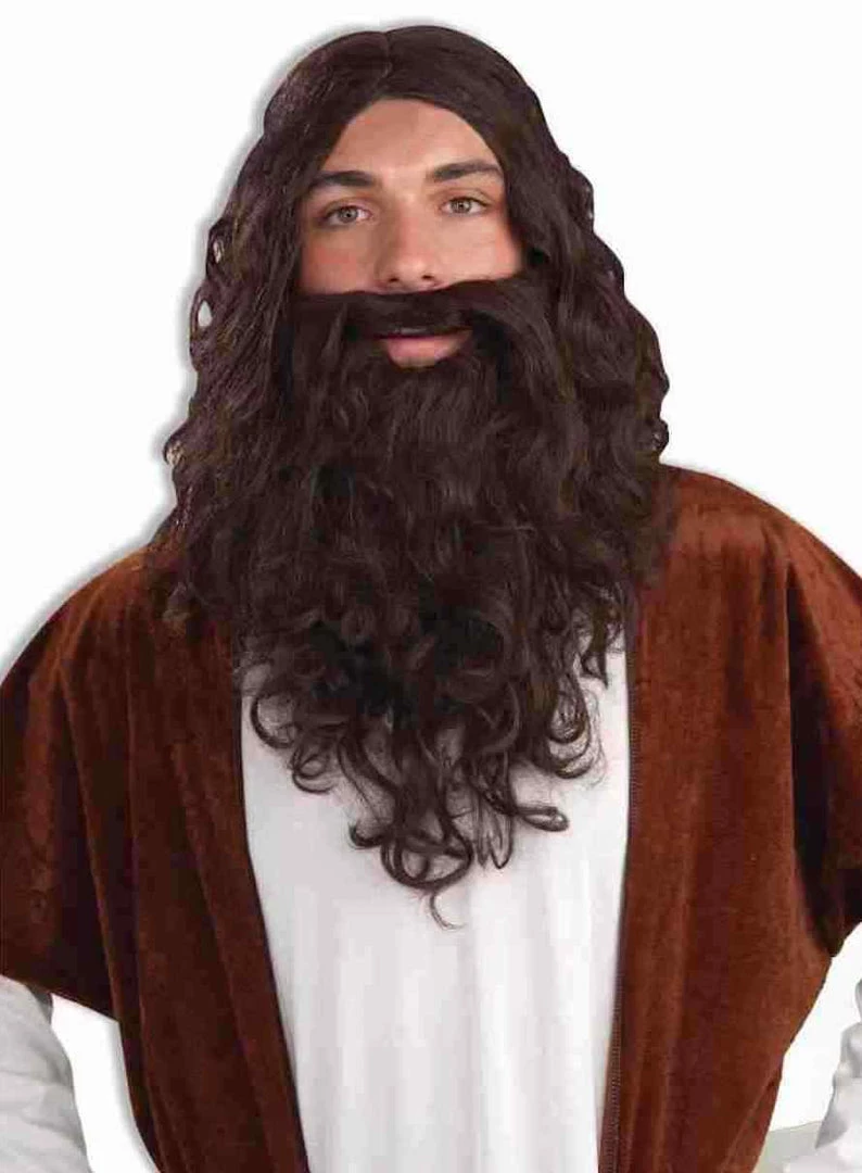 Deluxe Dark Brown Wig With Crown– Includes Wig, Beard & Crown of Thorns
