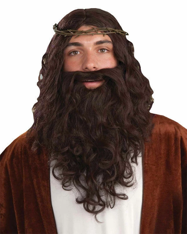 Christ Wig Beard Moustache With Crown of Thorns Easter Costume Set