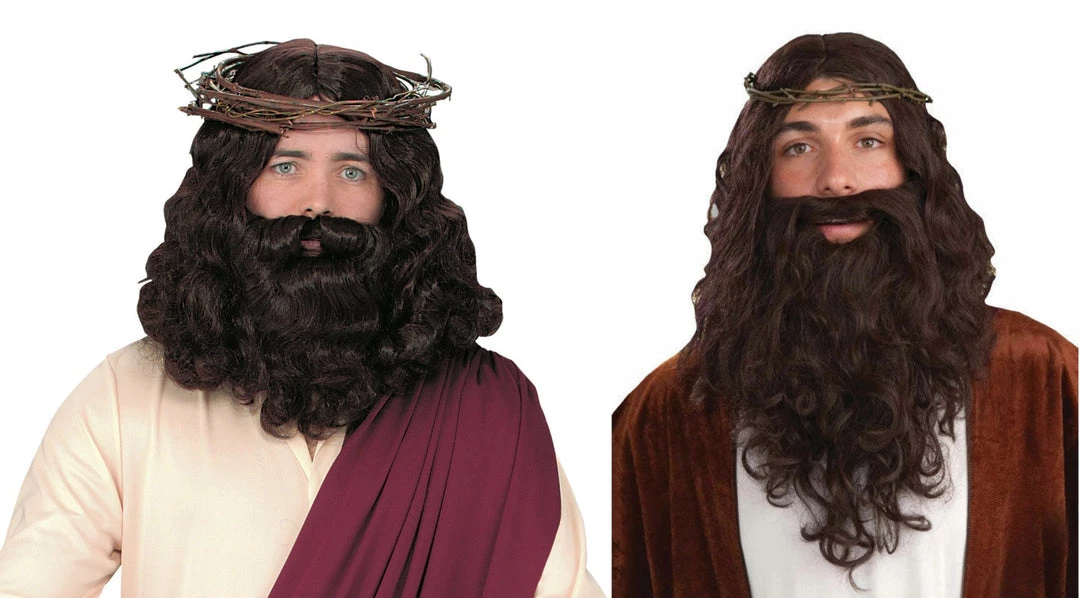Jesus Christ’s wig beard and crown of thorns are essential wear if you are