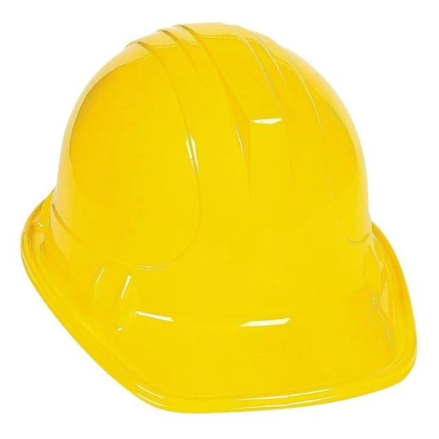 This yellow construction hat is made from thin plastic and is recommended for kids ages 3+. One size fits most.