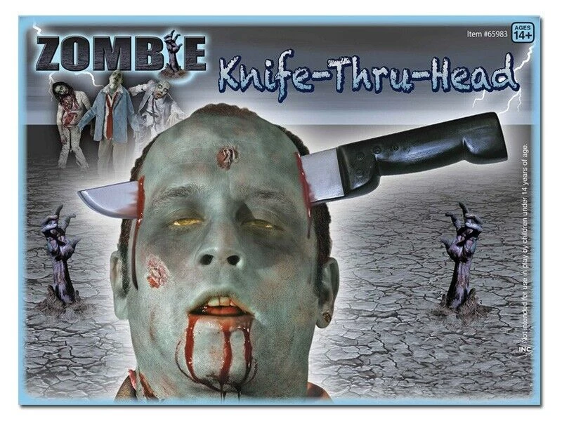 This Zombie knife through head is the perfect accessory for Halloween. This versatile accessory can be used for a variety of occasions.