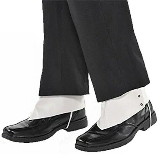 Add character to your gangster costume with a pair of White Spats. These White Spats fit comfortably over most men’s dress shoes.