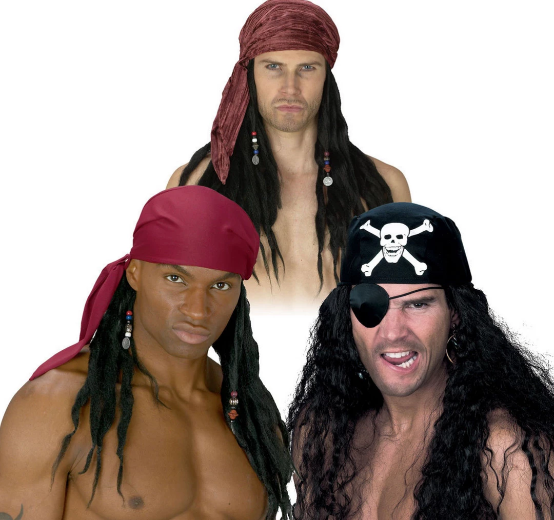 Pirate Wig, Brown, with Bandana, Beads and Charms.