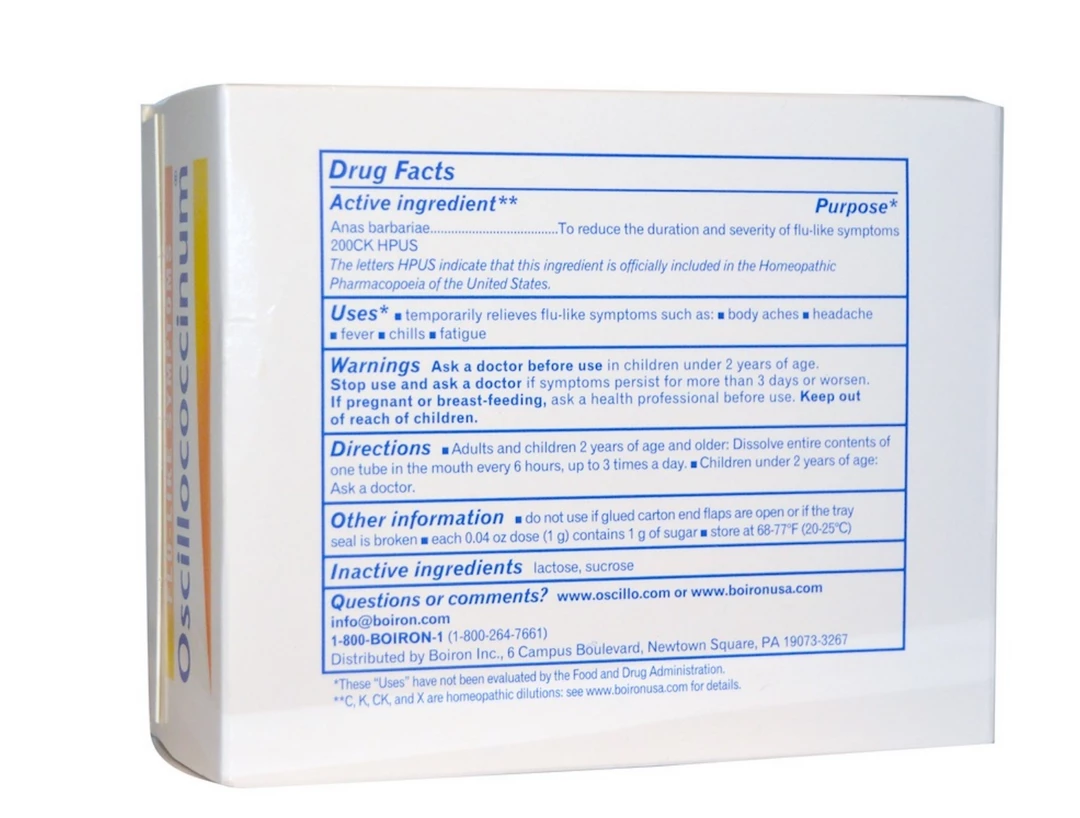 | Anas barbariae 200CK HPUS | To reduce the duration and severity of flu-like symptoms |