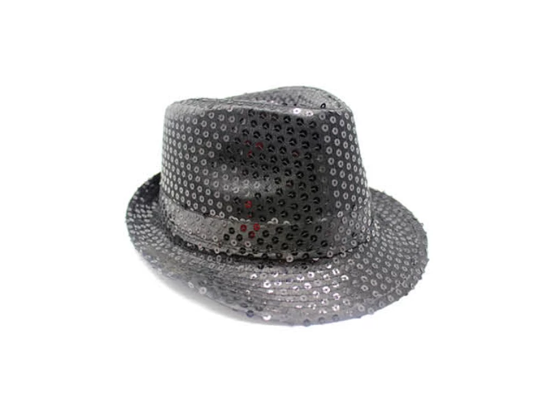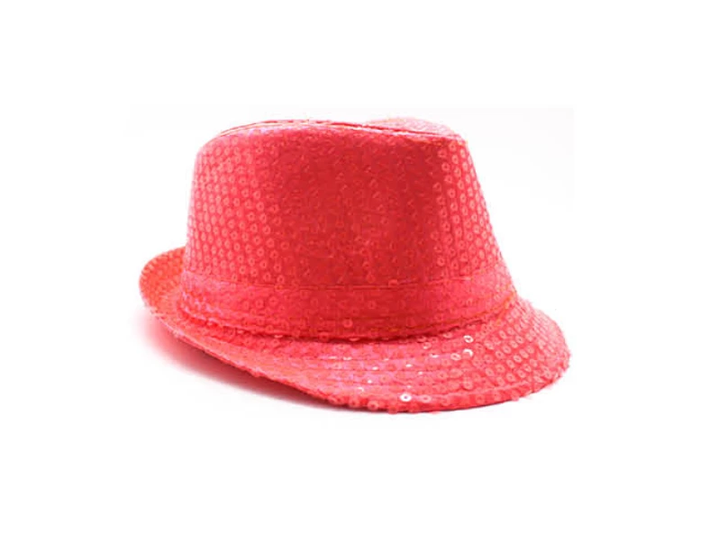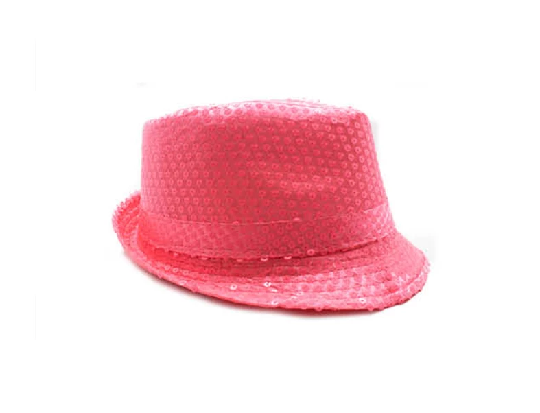Our Sequin Trilby Hat has a classic look of a fedora/trilby hat: a pinched crown and a curved brim. Made of sparlky sequinned fabric, with a choice of various vibrant colours, this trilby hat is excellent for stage performances, disco parties, and any other fun events such as rave parties and carnivals. Â