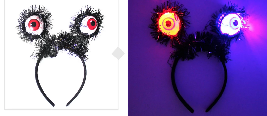 This Scary Eyeball Headband features a pair of creepy looking eyeballs that flash