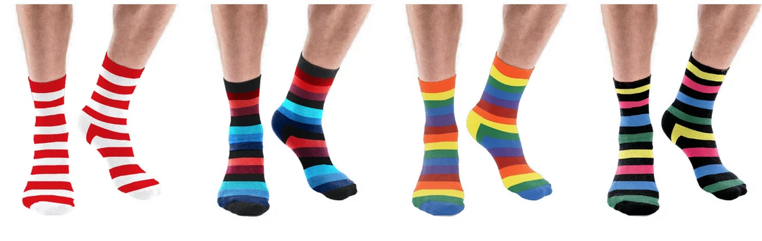 | Colour | Red & White, Black Blue Red, Bright Rainbow, Black Rainbow, 4 Pairs All Colours |