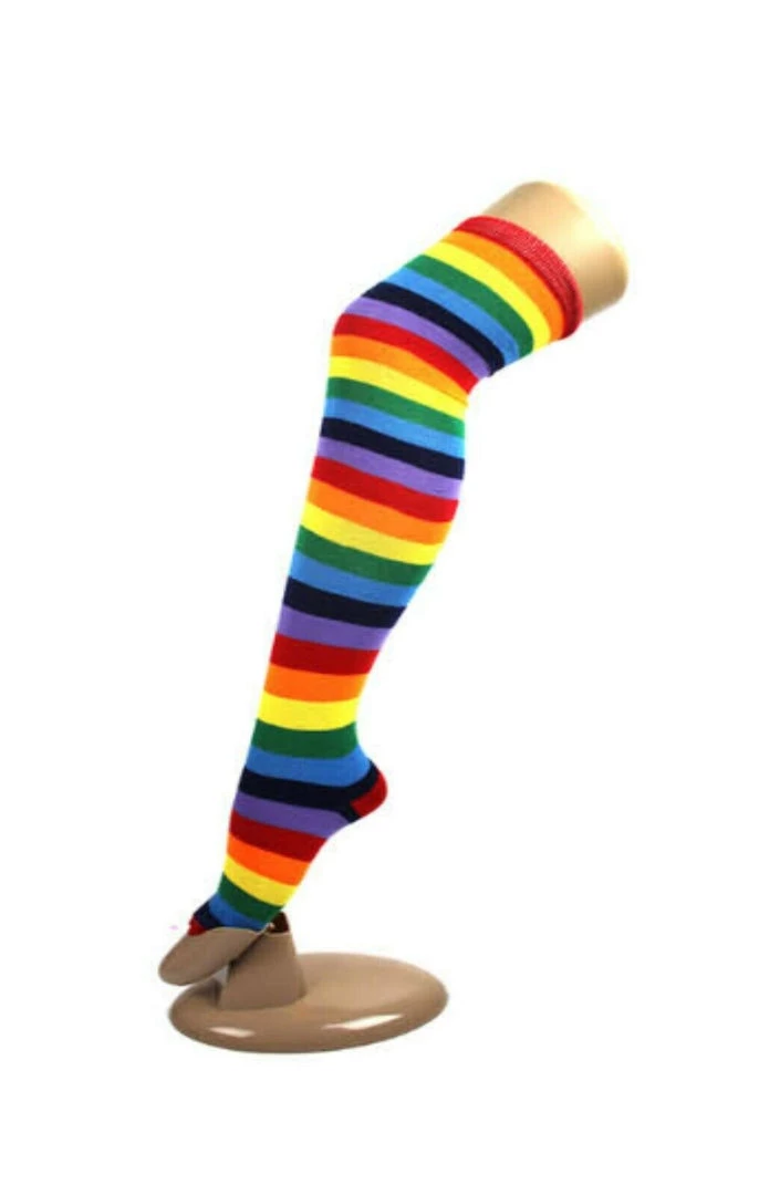 - One pair of over the knee striped socks.