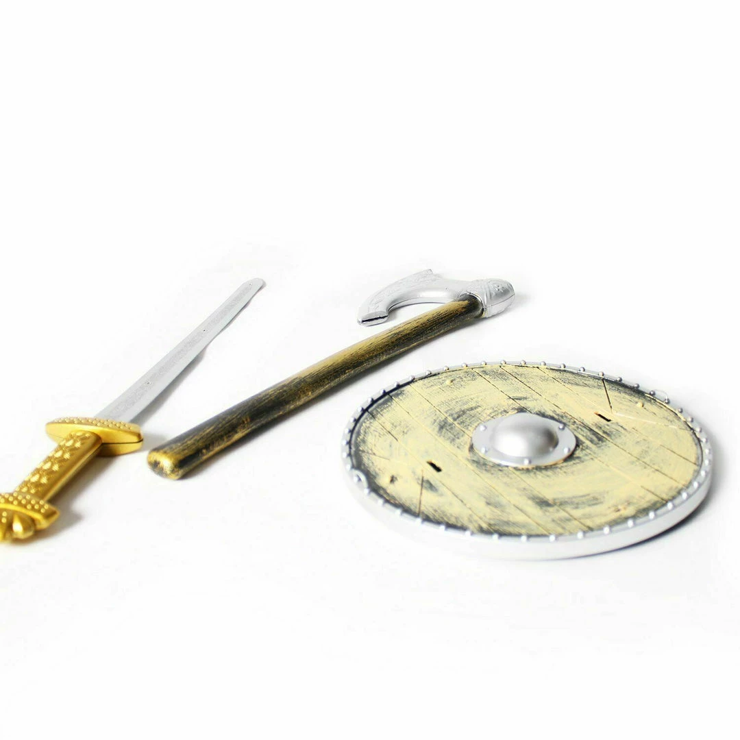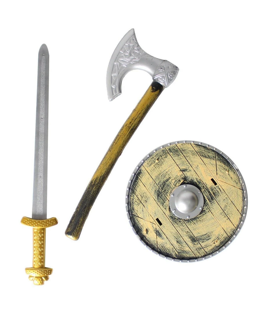 This Sword, Axe & Shield Accessory Set has what you need to become a medieval knight! A fantastic set of props for your next costume dress up day.