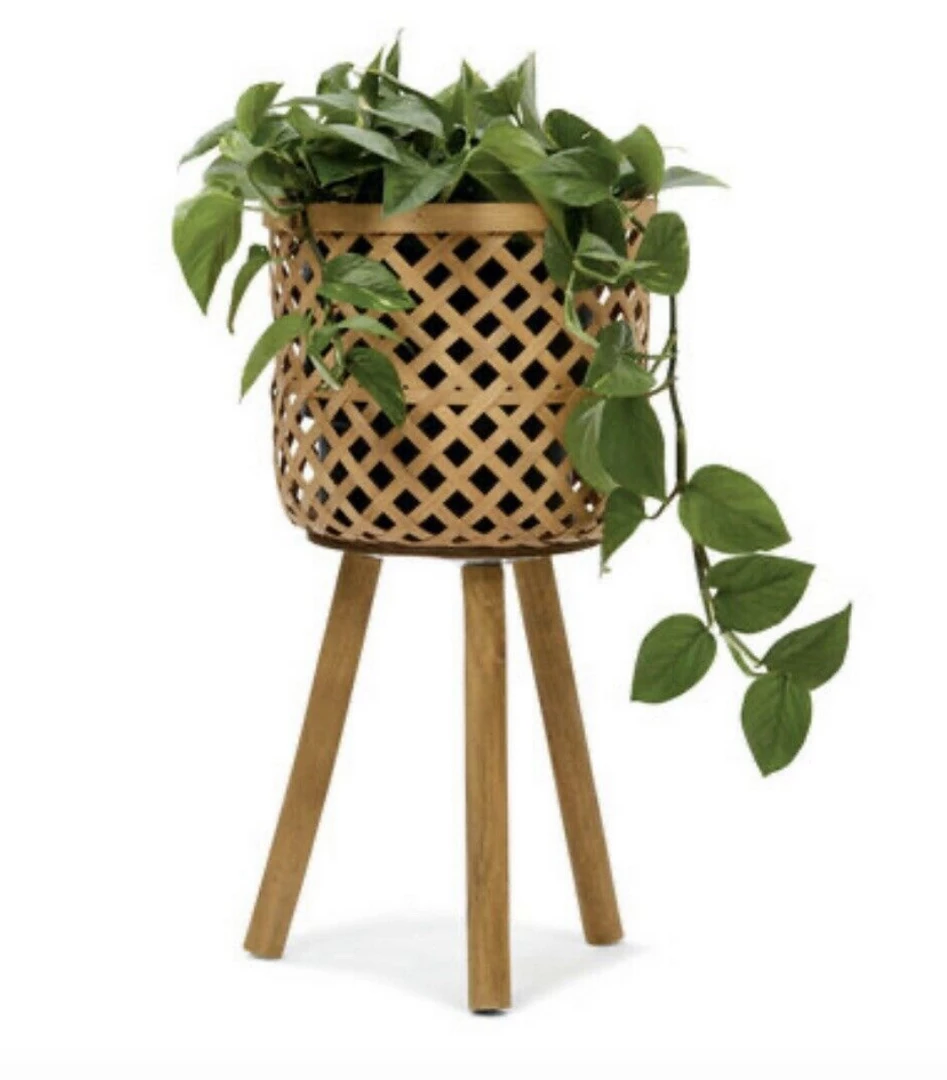 Perfect for indoor and outdoor use, this bamboo pot holder will create a striking contrast with the green planted in it!