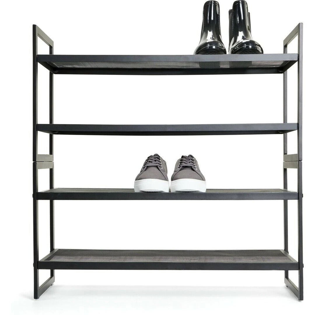 Store your shoes neatly and conveniently in this 2 tier stackable mesh shoe rack.