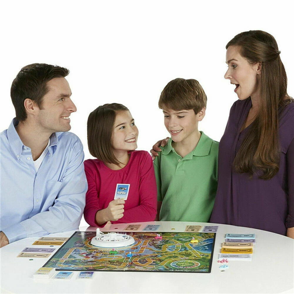 In The Game of Life game players can make their own exciting choices as they move through the twists and turns of life. Move the car token around the game board from Start to Retirement, and experience unexpected surprises related to family, career, dream vacations, and other milestones of life. The player with the most money at the end of the game wins!