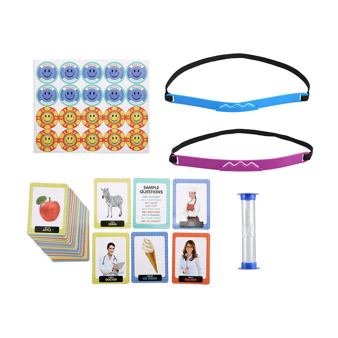 - Includes 4 x headbands, 51 x cards, 1 x timer and 20 x scoring chips