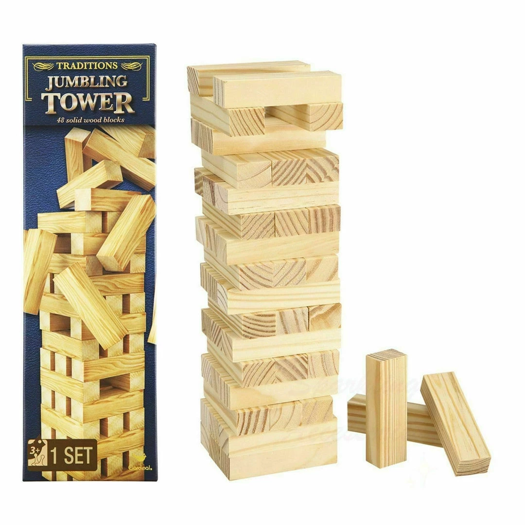 Let the weekend fun begin! Build your tower as tall as you can and remove one block from the middle or bottom and place it on top without knocking over the tower.