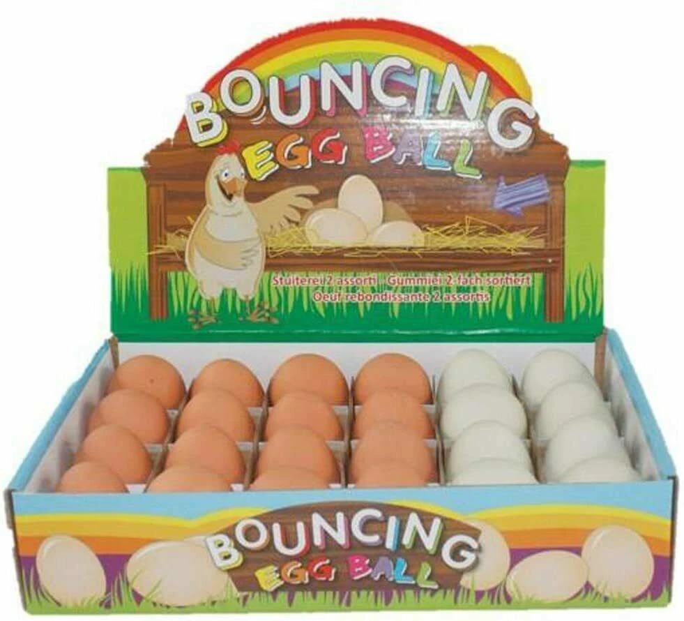 Set of 24 realistic fake rubber bouncing eggs. Imitation eggs that can be used for pranks, party gifts, goodie bag fillers, and much more. Made of durable rubber for long lasting balls. Bouncy eggs are about 2″ in size, just like a normal sized egg. Colors are the same as regular real eggs.