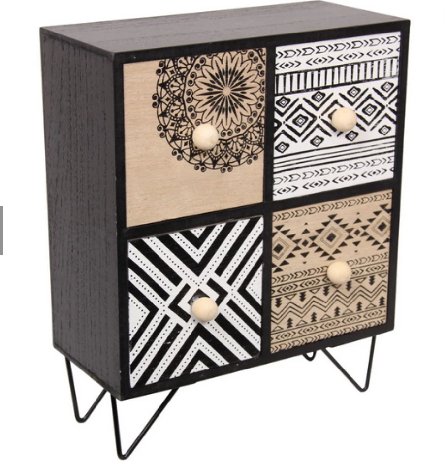 This stunning smaller 4 draw Aztec Inspired set of draws are perfect for jewellery or bathroom accessories.