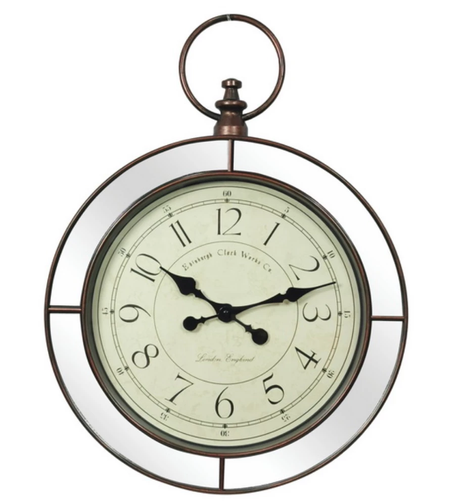 This clock is a large, fascinating, genuine timepiece is crafted with a mirror frame. It has contrasting grey roman numerals and is a great piece to have in your kitchen or lounge, home office or hallway.