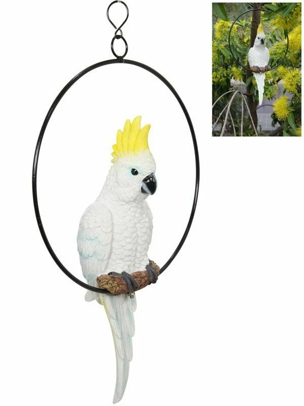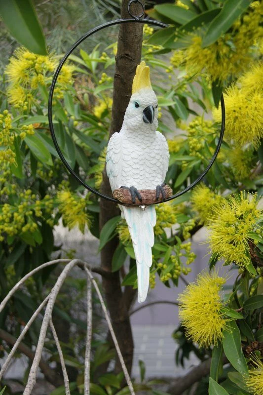 This gorgeous Australian native bird is bright and colourful. Crafted from lightweight poly-resin, this parrot is perched on a gorgeous black 25cm metal hanging swing. The colour and textures are very realistic & the metal hanger also includes a hook for easy hanging. Sure to add character & charm to any garden or outdoor area. Painted with quality UV paint, suitable for indoor or outdoor use.