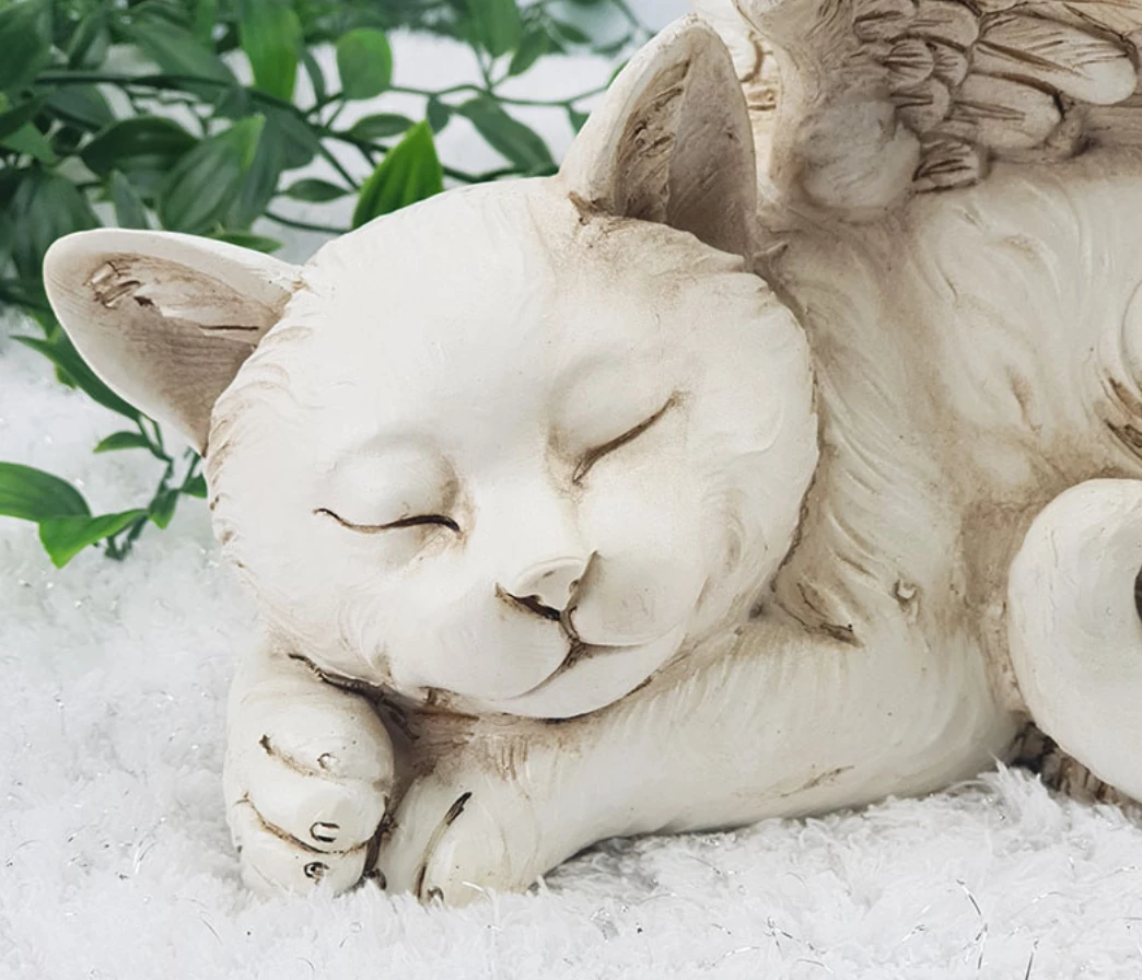 Create your own special garden memorial setting for your beloved Cat with this beautifully crafted sleeping angel cat figurine. Suitable for outdoor garden setting or indoor display.