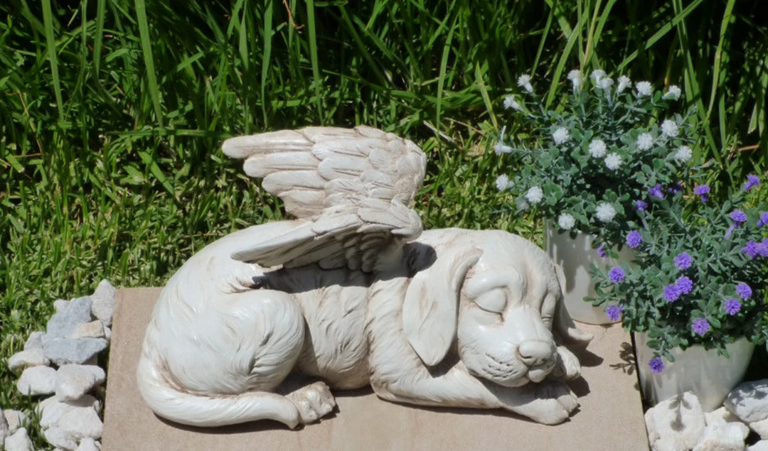 Create your own special garden memorial setting for your beloved dog with this beautifully crafted sleeping angel dog figurine. Suitable for outdoor garden setting or indoor display.